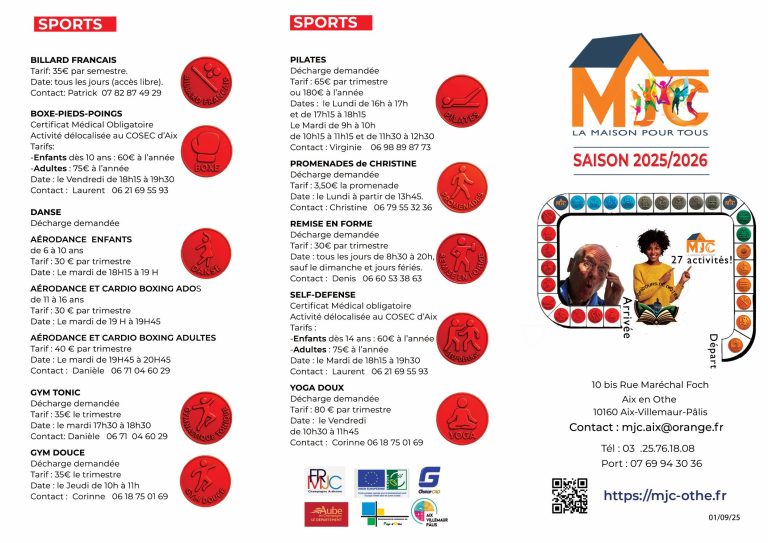 « mjc-othe.fr ». N’hésitez pas à le consulter, vous y trouverez de nombreuses informations nécessaires au bon fonctionnement de notre association.